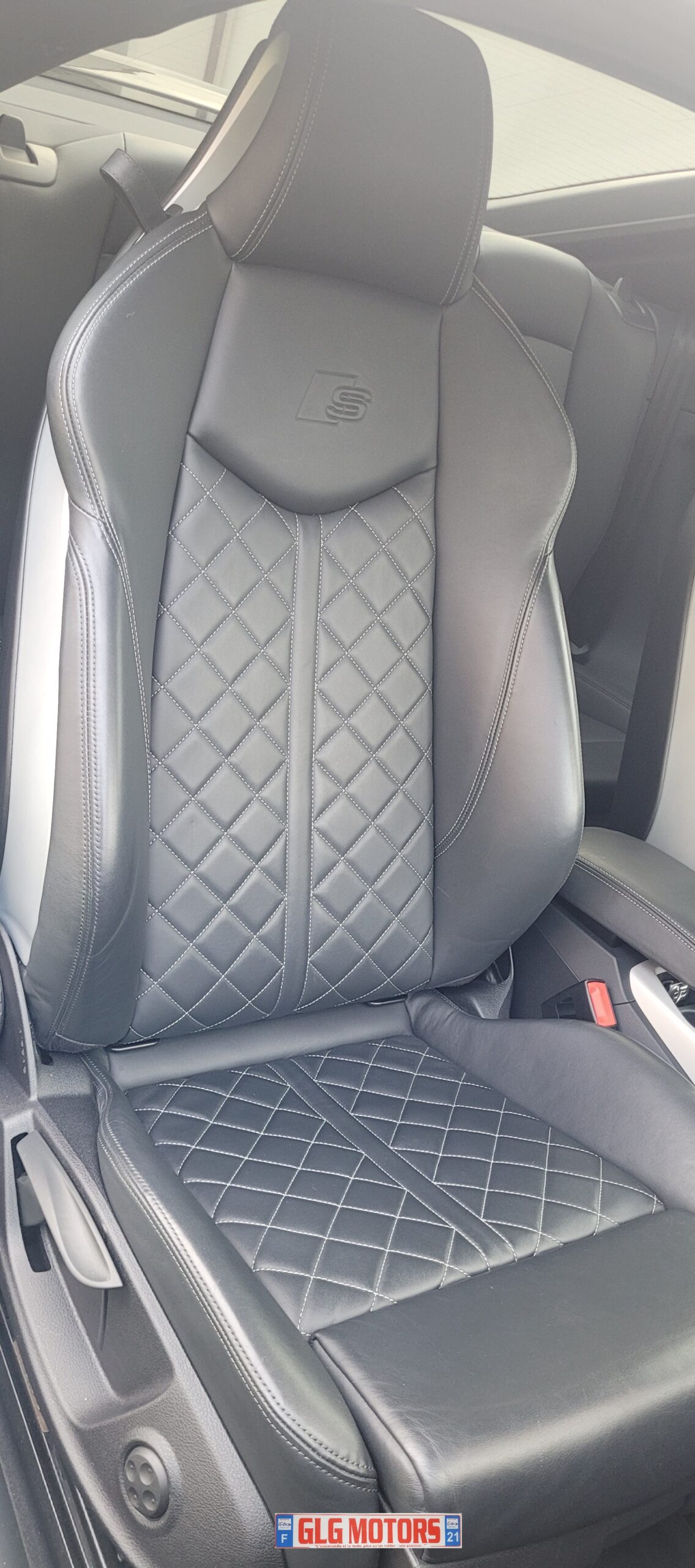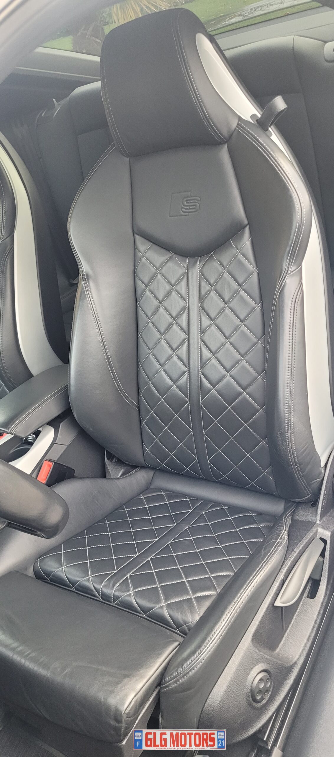 – sellerie en Cuir Nappa fin Noir avec piquage en losange et surpiqûres contrastées